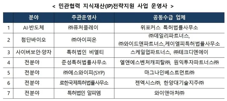 그리고 비엘티엔파트너스의 모회사인 특허법인 비엘티는 지난 5월 ‘특허청 TIPS’로 불리는 ‘한국발명진흥회 2025년 민관협력 IP전략지원 사업’에 선정됐다. AI반도체, 첨단 바이오, 사이버보안/양자 등 첨단 기술 스타트업의 성장을 지원하는 2025년 민관협력 IP전략지원 사업(CIPO프로그램)은 CIPO(Chief Intellectual Property Officer, 최고IP경영자)는 기업의 지식재산권에 대한 전략수립과 R&D(연구개발), IP포트폴리오, 라이선싱, 권리보호, 거래, 소송, 금융 등을 관리하는 업무를 담당하게 된다.